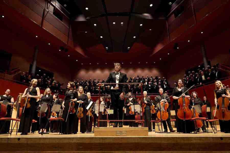 Conducted by David Gibson, music director of both choirs, the combined group comprised around one hundred singers who opened the concert with the Vaughan Williams Towards the Unknown Region. Then came Four Sea Interludes by Benjamin Britten, played with great verve by the Docklands Sinfonia.